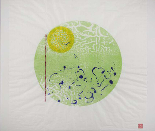 Es wird in dem gesamten Bild den Verlauf sichtbar machen – es ist auf dem Weg. Eine scheinbar ausgewogene Situation die Spannung und Erwartung erzeugt ohne das eine Farbe oder eine Form das Feld verlassen hat; auch die zurückhaltendste Farbe oder Figur, hat den Prozess beeinflusst - die andern mussten darauf eingehen.